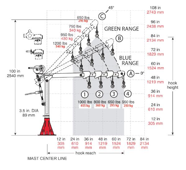 mit stufenlos einstellbarem Auslegerwinkel für größere Lasten