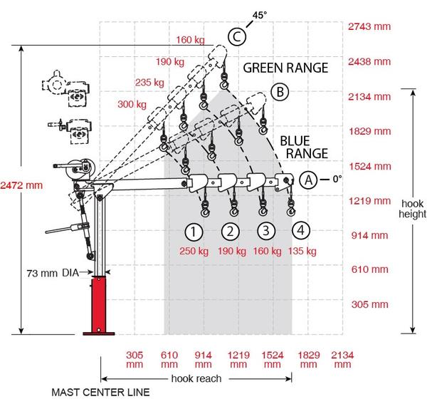 mit stufenlos einstellbarem Auslegerwinkel für kleinere Lasten