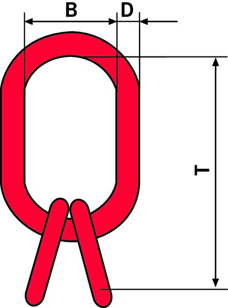 BezeichnungTragfähigkeit 4 Strang NW 0-45° [kg]Tragfähigkeit 4 Strang NW 45-60° [kg]B [mm]D [mm]T [mm]ca. Gewicht (netto) [kg]Kettenanschluss [mm]