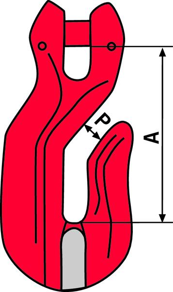 | Bezeichnung | Tragfähigkeit [kg] | A [mm] | P [mm] | ca. Gewicht (netto) [kg] | Kettenanschluss [mm] |