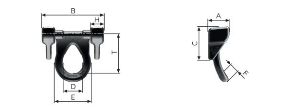 | Bezeichnung | LC zulässige Zugkraft [daN] | A [mm] | B [mm] | C [mm] | D [mm] | E [mm] | F [mm] | H [mm] | T [mm] | ca. Gewicht (netto) [kg] |