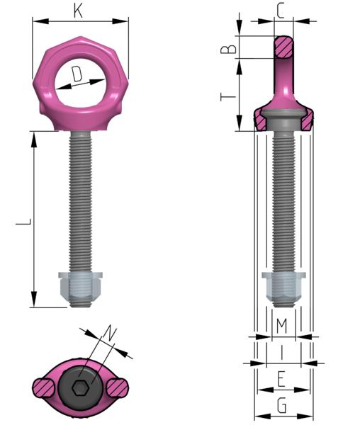 | Bezeichnung | Tragfähigkeit [kg] | B [mm] | C [mm] | D [mm] | E [mm] | L [mm] | M [mm] | N [mm] | T [mm] | ca. Gewicht (netto) [kg] |